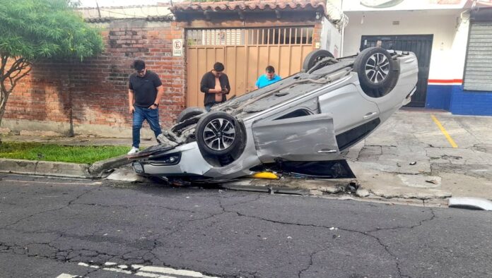 En redes sociales circula un video en el cual se aprecia un vehículo volcado. El hecho ocurrió en la avenida Washington de San Salvador, según informaron autoridades policiales.