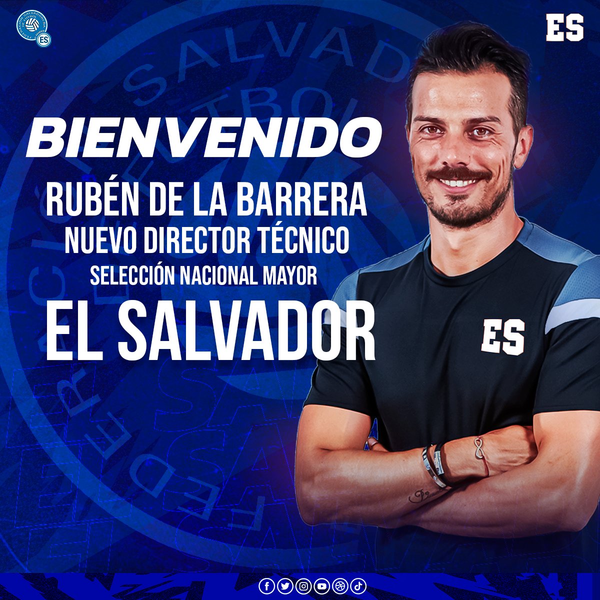 La Federación Salvadoreña de Fútbol informo que Rubén de la Barrera será el nuevo director deportivo de la selección nacional de El Salvador, a sus 38 años cuenta con 13 años de experiencia como entrenador profesional, teniendo su primera experiencia como entrenador a nivel de selecciones.