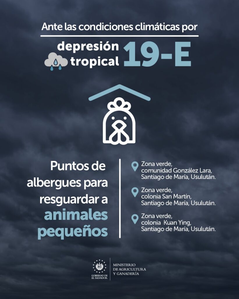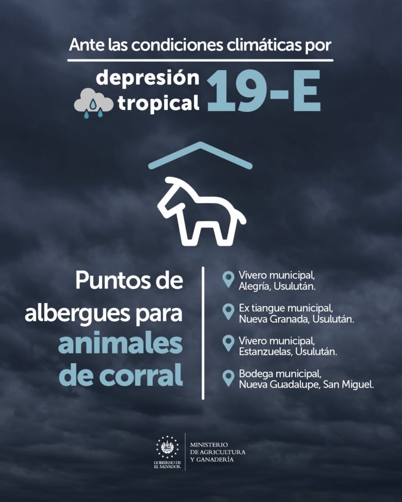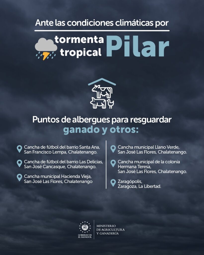 El Ministerio de Agricultura y Ganadería expreso que habilitaran un albergue para animales de corral tras la alerta de la tormenta tropical Pilar y los agricultores puedan llevar los animales a los albergues para prevenir riesgos daños o perdidas.
