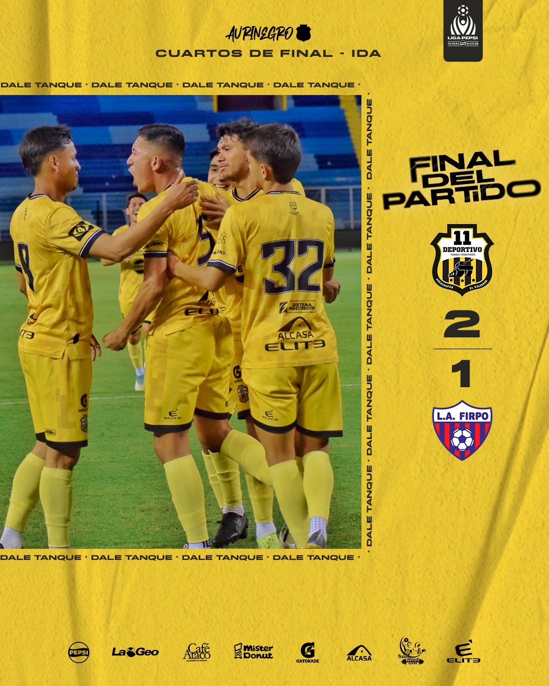 En el partido de IDA de la Primera División de El Salvador, 11 deportivo Fútbol Club y Luis Angel Firpo se enfrentaron en el Estadio Cuscatlán, el tanque fronterizo seria el que se llevaría la ventaja, con marcador de 2-1, todo se definirá en Estadio Sergio Torres Rivera, Usulután.