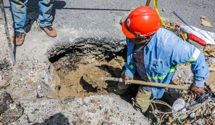 Reparan tubería dañada en calle Lamatepec, en colonia Miramonte