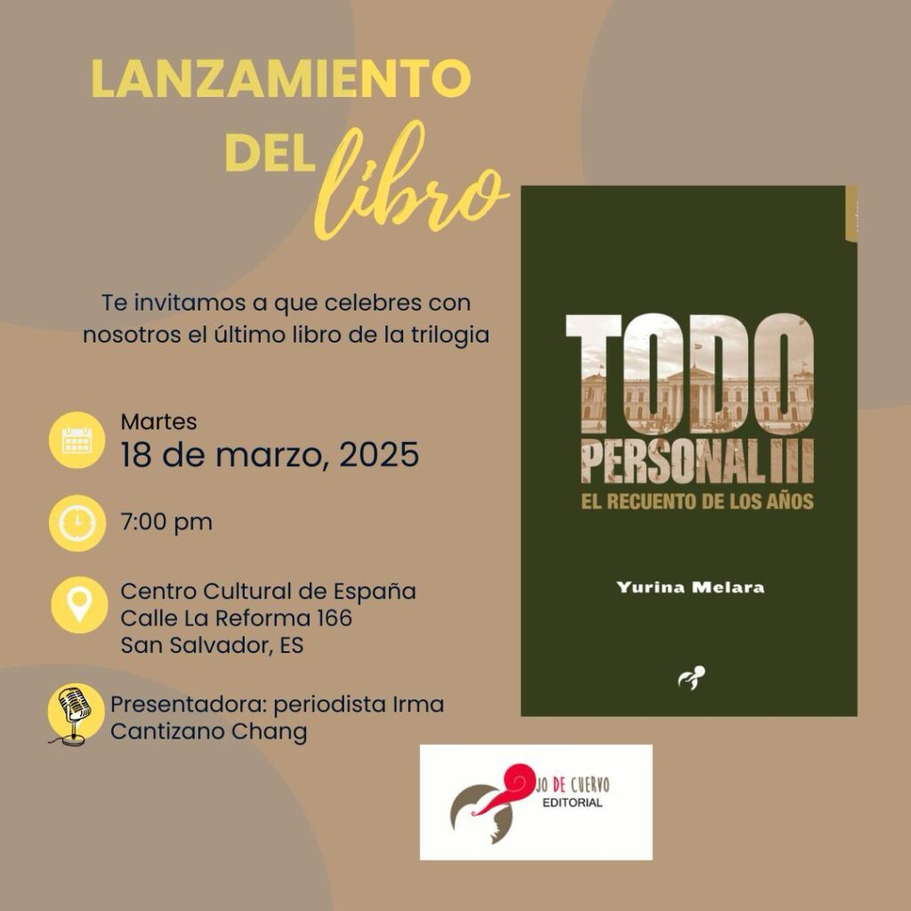 Yurina Melara consolido el éxito con los primeros dos libros, «Todo Personal» y «Todo Personal II: Entre el Amor y el Poder», y se convirtió una de voces más destacadas en la narrativa salvadoreñas. “Mis libros están escritos con el propósito de entretener mientras exploran temas sociales que marcan la realidad de El Salvador”, afirma la autora Melara.