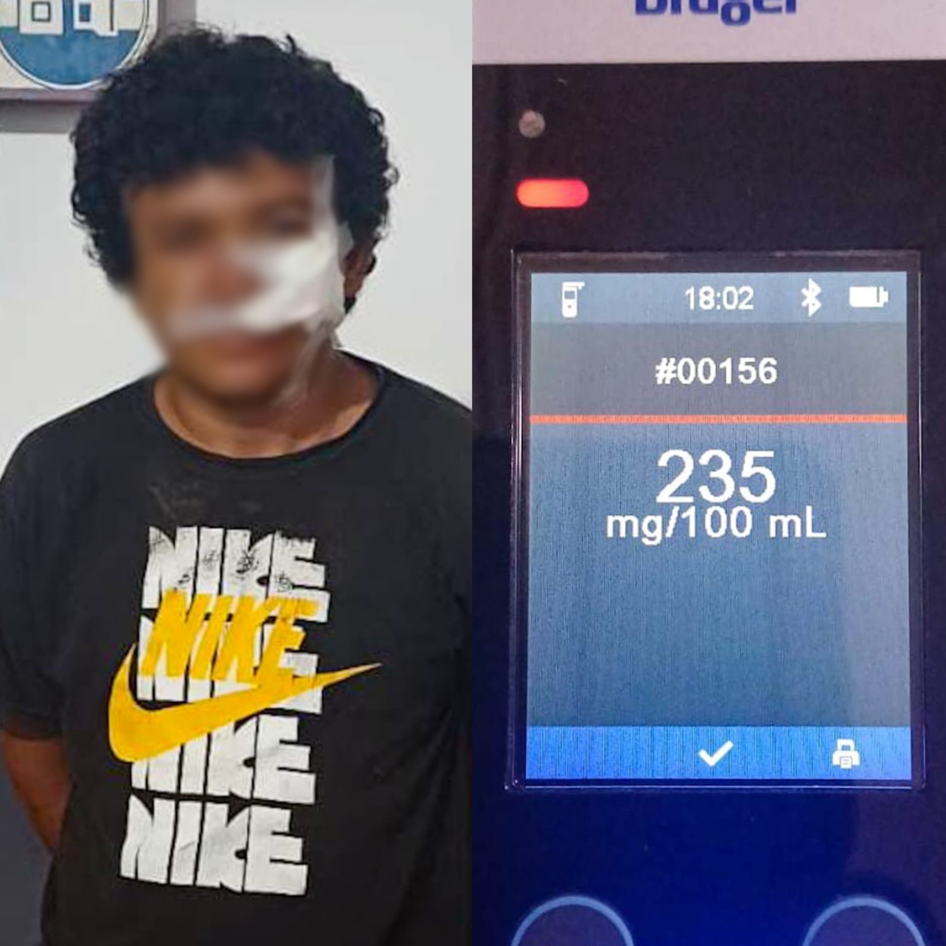 Al realizarle la prueba de alcotest resultó positiva con 235° de alcohol. Será remitido por el delito de conducción peligrosa.
