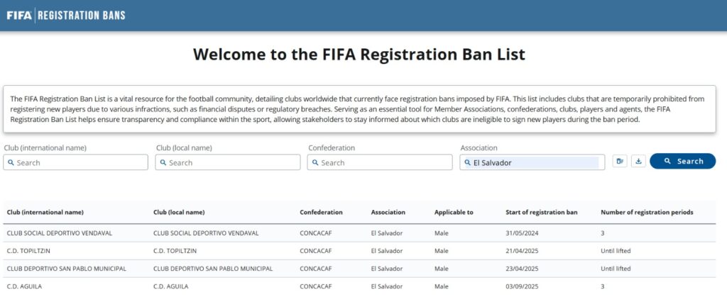 En el listado de la FIFA hay mas equipos salvadoreños que estan sancioandos en los que destacan: