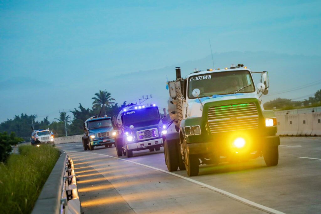 La flota de camiones cisterna que permitirá reforzar el abastecimiento de agua potable a las familias del Área Metropolitana de San Salvador, procedente de Guatemala, ya se encuentra en el territorio, para sumarse a las labores de distribución. Durante la noche del viernes y la madrugada del sábado ingresó al país una flota de camiones cisterna desde Ciudad de Guatemala, Mixco y Asunción Mita, que se suman a las labores para robustecer la distribución de agua, como parte de las medidas implementadas en el plan de contingencia que se ejecuta, a la par se realizan los trabajos de reparación de la tubería que abastece al 30 % del AMSS.