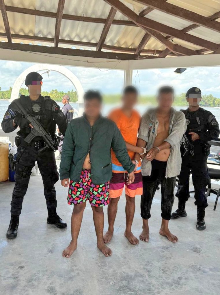 El Ministro de Justicia y Seguirdad Publica, Gustavo Villatoro destacó que detuvieron a presuntos narcotraficantes a 5 millas náuticas al sur de la playa Los Cóbanos, Sonsonate.