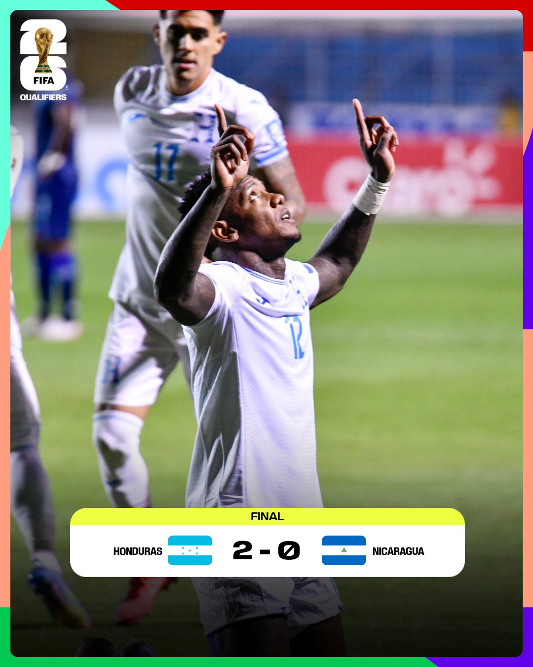 La Ronda Final de las Clasificatorias de Concacaf para la Copa Mundial de la FIFA 2026 continuó con Honduras venciendo 2-0 a Nicaragua en el Grupo C, este martes en el Estadio Nacional José de la Paz Herrera de Tegucigalpa, Honduras.