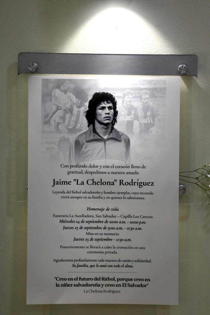 En una funeraria capitalina se realiza la velación de quien en vida fuera Jaime “La Chelona” Rodríguez, una de las figuras emblemáticas del fútbol salvadoreño que formó parte de la generación que logró la clasificación de la Selecta al Mundial de España 1982.
