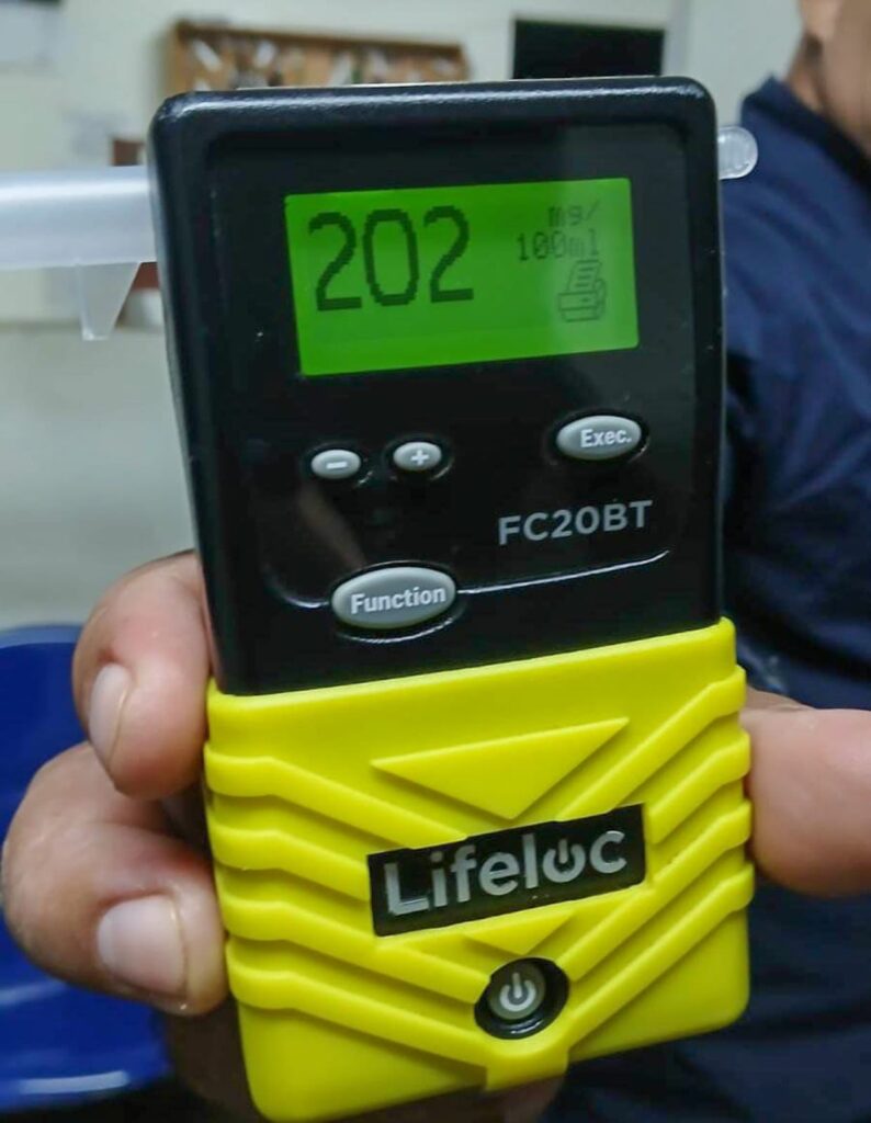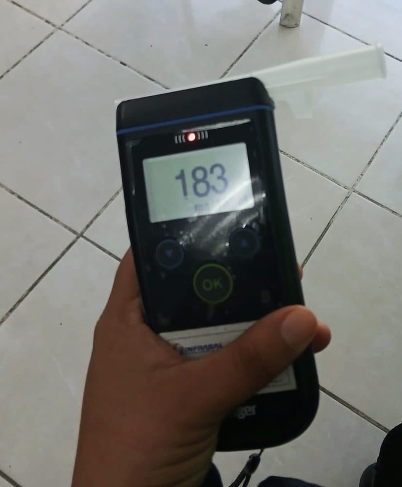 Al realizarle la prueba de alcotest resultó con 202° de alcohol.