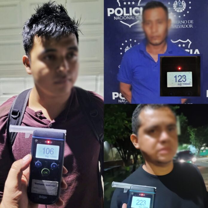 La Policía Nacional Civil de El Salvador (PNC), destacó la detención de varios conductores en estado de ebriedad, en varios puntos de El Salvador.