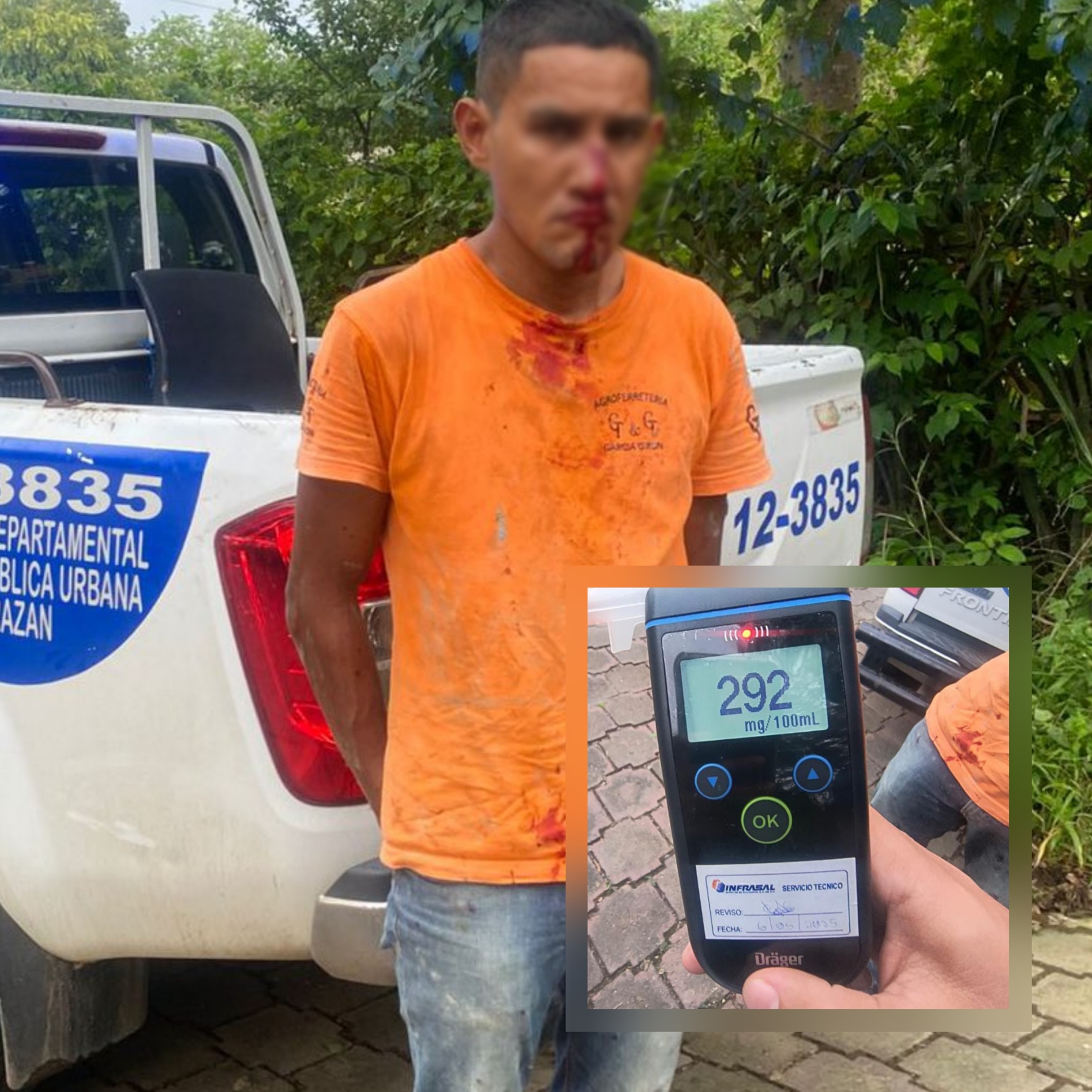 José Gabriel Buruca Portillo, de 35 años, fue detenido por la Policía Nacional Civil de El Salvador (PNC), tras chocar contra otra motocicleta por conducir en estado de ebriedad.