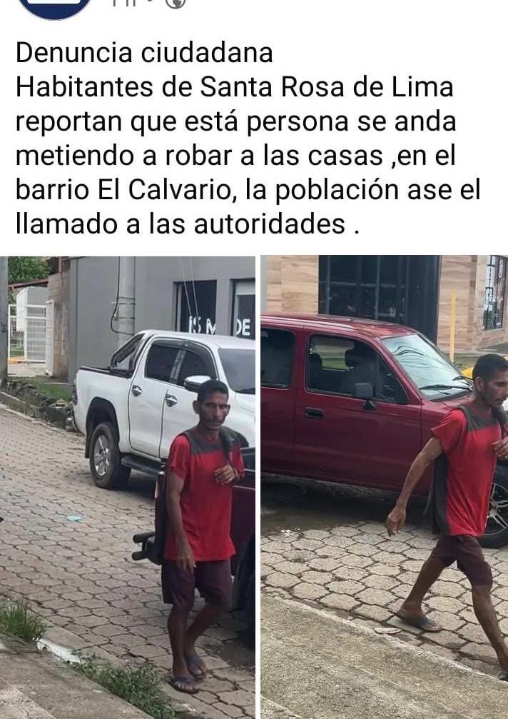 Tras una denuncia ciudadana, soldados de la FUERZARMADA ubicaron a Santiago Reyes Morales, alias “El Pando”, en el Barrio La Esperanza, Santa Rosa de Lima, La Unión Norte. Aparentemente está vinculado a diversos hurtos en viviendas particulares y supermercados.