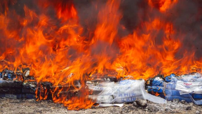 La Fiscalía General de la República de El Salvador (FGR), en conjunto con la Policía Nacional Civil (PNC), destruye 360 kilos de droga.
