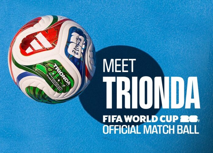 «Ya tenemos aquí el precioso balón oficial de la Copa Mundial de la FIFA 26 —afirmó el presidente de la FIFA Gianni Infantino—. Me alegra y me enorgullece presentar el TRIONDA. La marca adidas ha creado un nuevo y emblemático balón mundialista, cuyo diseño encarna la unidad y la pasión de los países anfitriones del torneo del año que viene: Canadá, México y Estados Unidos. Estoy deseando ver los primeros goles con esta maravillosa pelota. La cuenta atrás para el Mundial más grande de la historia está en marcha, y el balón ya ha echado a rodar». El llamativo diseño del esférico presenta un patrón rojo, verde y azul que rinde homenaje a los tres países coanfitriones, mientras que la novedosa construcción a partir de cuatro paneles con fluidas figuras geométricas reproduce las ondas a las que hace referencia su nombre. Estos paneles confluyen para formar un triángulo en el centro del balón, en referencia a la histórica unión de los tres países anfitriones.