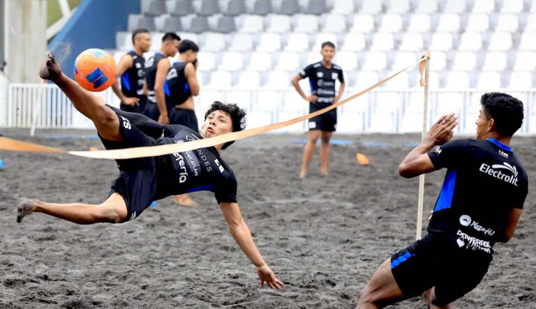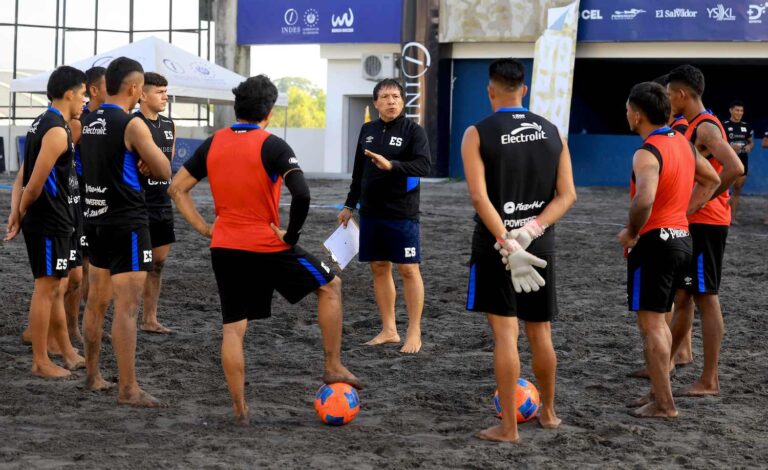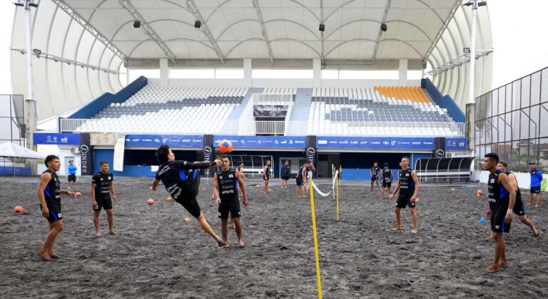 La selección de fútbol playa trabajó la primera sesión de entrenamiento del día en la cancha del Estadio de Deportes de Playa, ubicado en el Complejo Deportivo Flor Blanca. La práctica matutina se centró en trabajos específicos de jugadas a balón parado.
