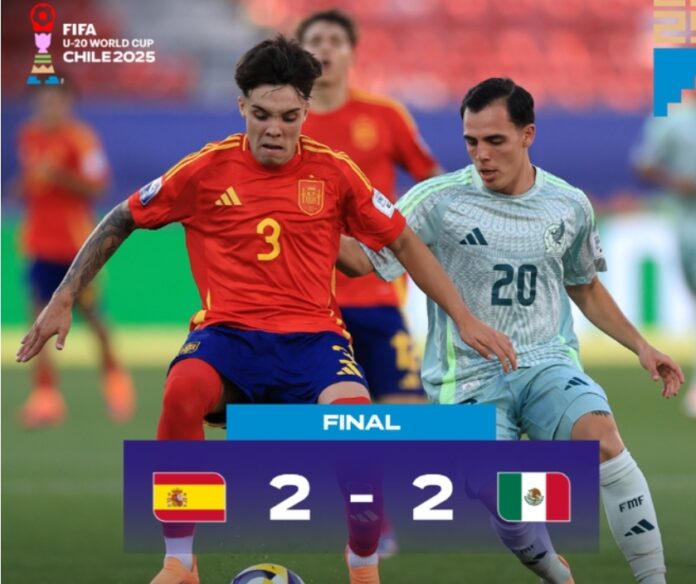 México se fue adelante, resistió, aflojó y empató 2-2 en los últimos minutos con España, en un partido en Santiago que no les deja bien parados porque el Tri ha quedado con 2 puntos en igual número de salidas en el Grupo C y la Roja alcanzó su primer punto en el Mundial Sub-20 de Chile.
