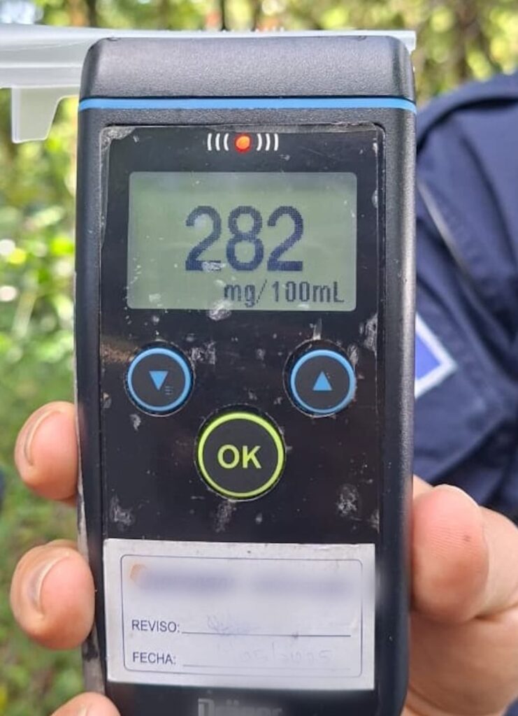 La prueba de alcotest dio positiva con 282°. Será remitido por conducción peligrosa de vehículo automotor.