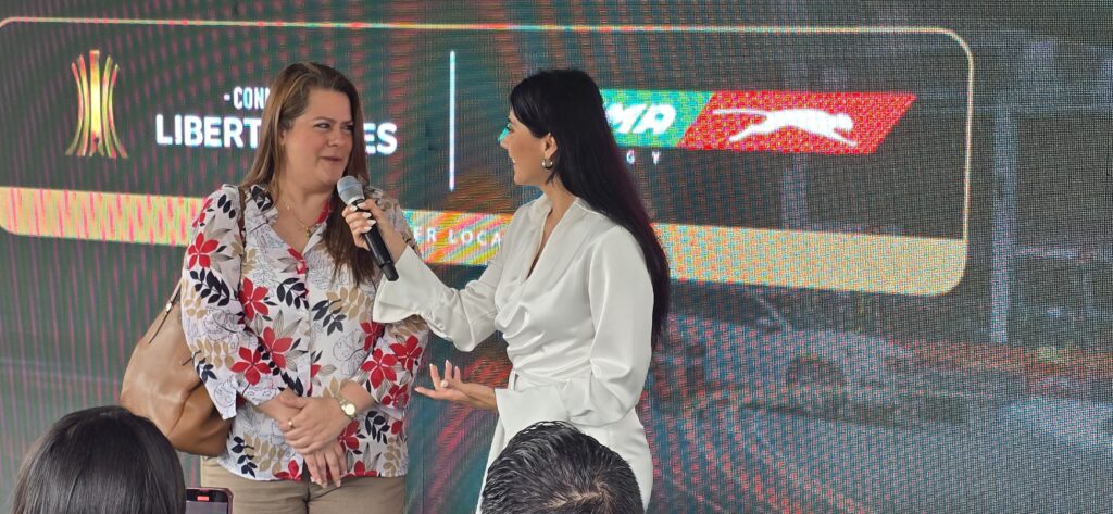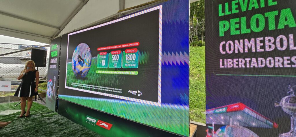 Por su parte, Marcela Zamudio, Gerente de Marketing de Puma Energy El Salvador, presenta la mecánica de la promoción, sus novedades y el método de sorteo. Entre las principales novedades, resalta que ahora todos los salvadoreños pueden adquirir el balón oficial de la Conmebol Libertadores por solo $18, incluso si no son socios Puma PRIS.
