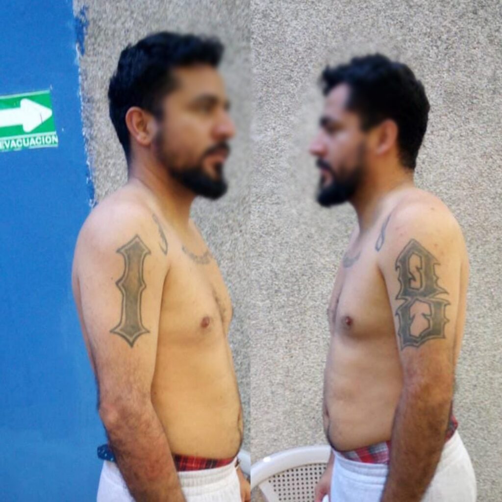 Posee varios tatuajes de su pandilla. Será remitido por agrupaciones ilícitas.