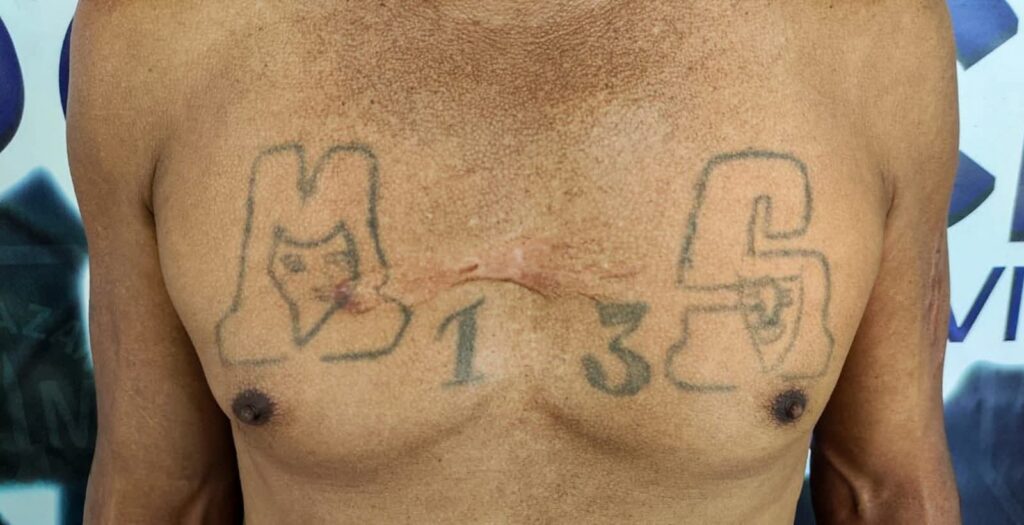 Tiene los tatuajes de su pandilla en el pecho y pertenece a la clica Morazanes Locos Salvatruchos. Será remitido por agrupaciones ilícitas.