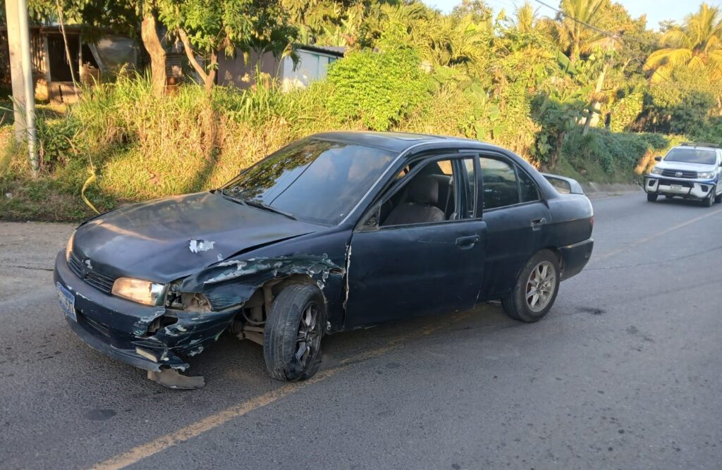 segun el reporte de la PNC un motociclista y su acompañante resultaron lesionados luego de colisionar con un vehículo en el km 58 de la carretera antigua de Santa Ana hacia San Salvador.