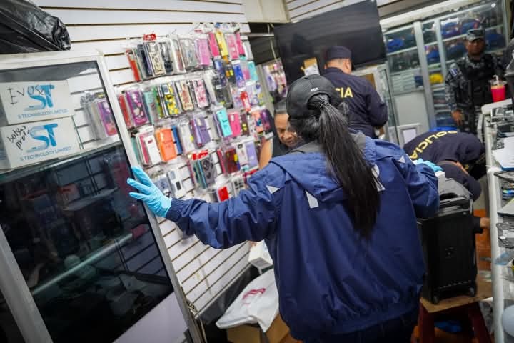 La Fiscalía General de la República (FGR), con el apoyo de la Policía Nacional Civil (PNC), efectúa un operativo en el centro de San Salvador para capturar a varios comerciantes que se dedican a comprar teléfonos celulares, tablets y otros artículos electrónicos que han sido obtenidos de forma ilegal, mediante robos y hurtos.