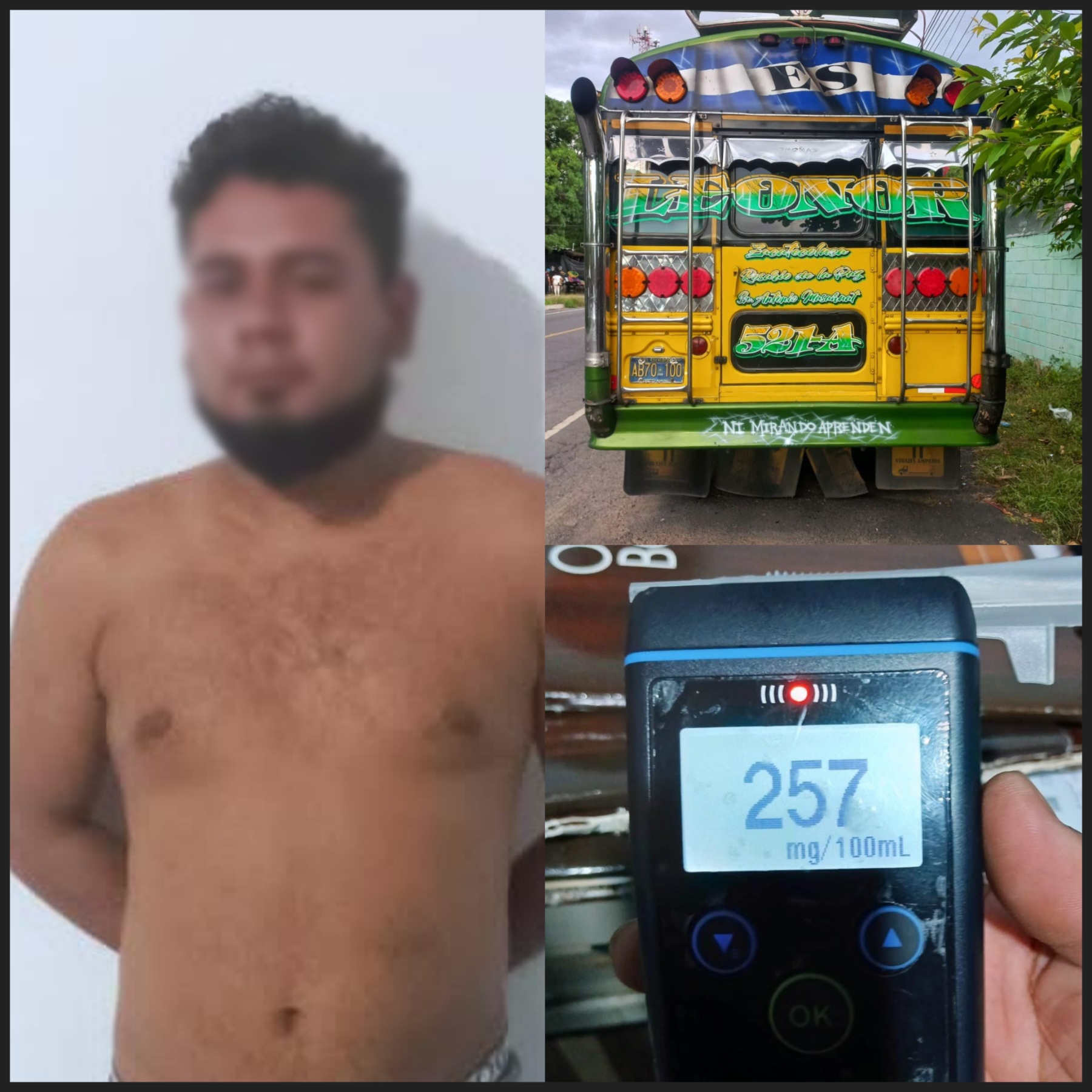 Al intervenirlo los agentes de la Policía Nacional Civil le realizaron la prueba de alcotest la cual resultó con 257° de alcohol.