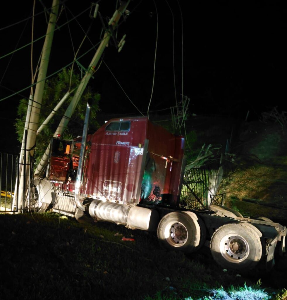 Aparentemente Erick Arosemena se accidentó en una rastra con la que chocó en varios postes del tendido eléctrico, será remitido por conducción peligrosa.