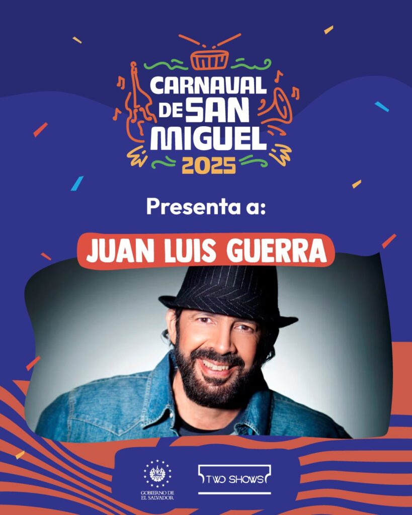 Juan Luis Guerra dará un show en el mitico Carnaval de San Miguel, constara con sus mejores exitos musicales para los salvadoreños y turistas, la presentación será totalmente gratis, abierta para que todos disfruten de una noche de puro ritmo y celebración.