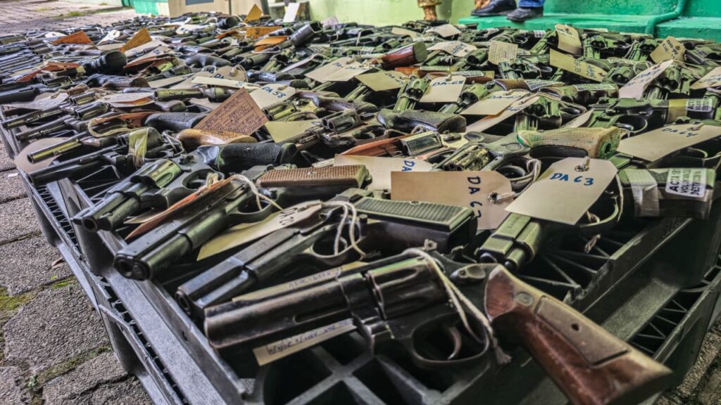 Las armas decomisadas se destruirán este día, durante esta fase, los técnicos verifican que cada una coincida con las características registradas. El personal de la Brigada de Seguridad Militar las ha clasificado en armas cortas, largas, deportivas o de aire, además de otros materiales como cartuchos, balines y perdigones.