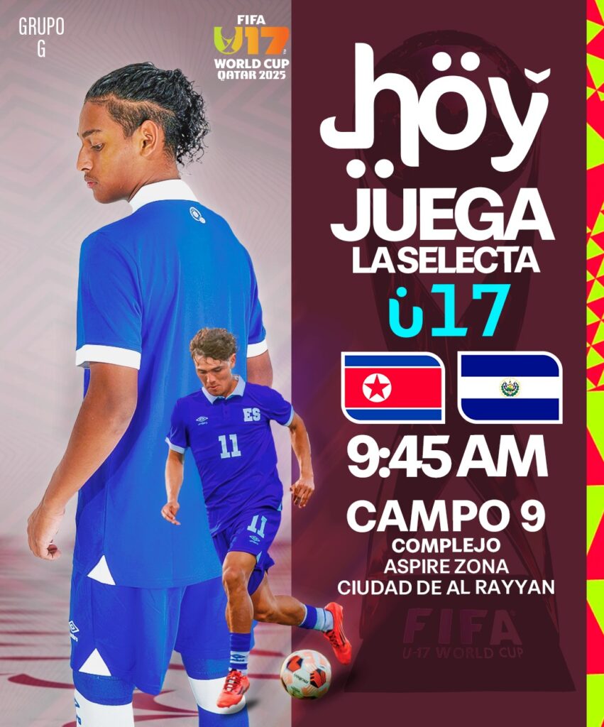 El Salvador debutará en la Copa Mundial Sub-17 de la FIFA enfrentando a Corea del Norte en el Grupo G en el Aspire Zone – Cancha 9 en Doha, Catar.