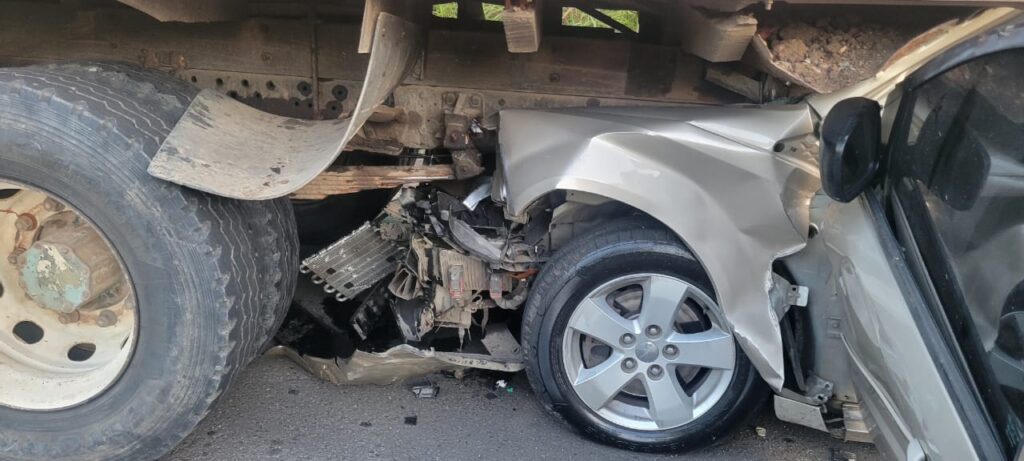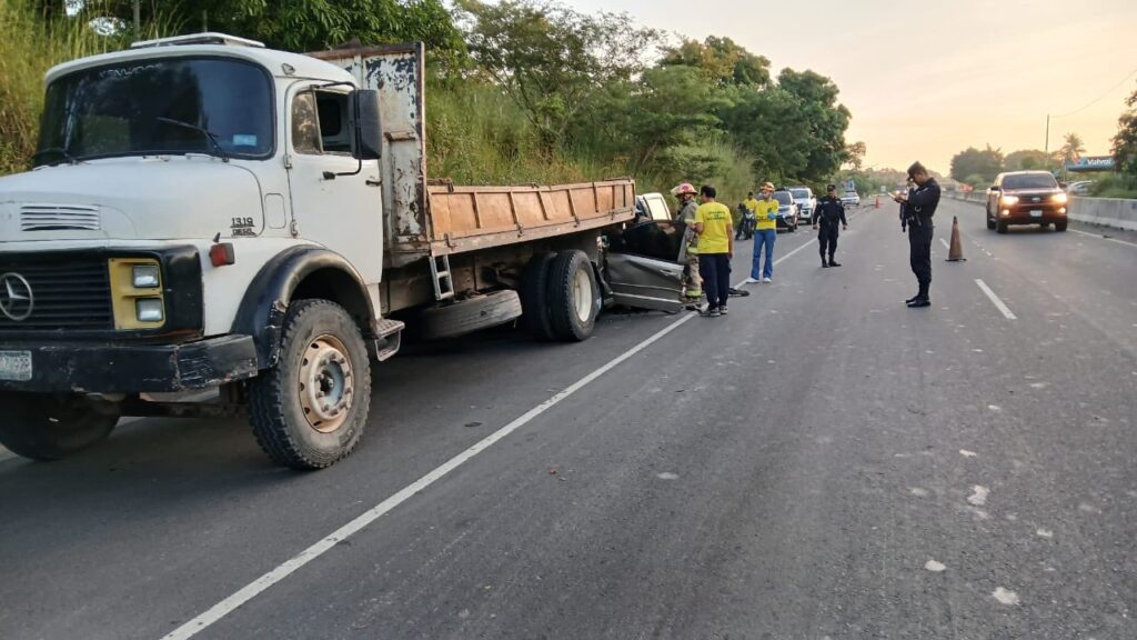 En horas de la madrugada se registró un accidente de tránsito en el que un vehículo tipo sedán impactó en la parte trasera de un camión arenero. El conductor del vehículo sedán falleció en el lugar.