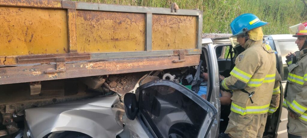 Personal de Comandos de Salvamento, en la unidad 024, estabilizó a dos personas que se conducían en el camión arenero. No fue necesario su traslado a un centro asistencial.