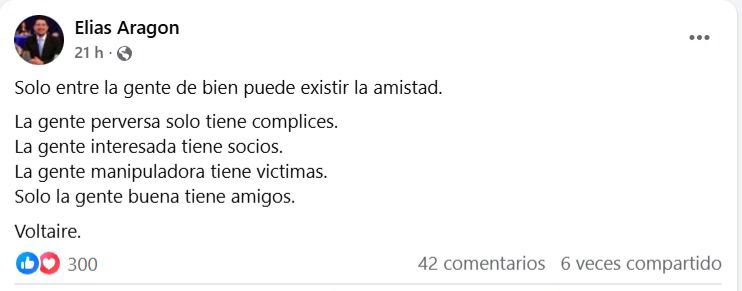 Aragon publico en redes sociales que sus promesas siempre fueron sinceras: “vengo de abajo, soy pueblo… no vi los lugares a intervenir con ojos de votos, lo vi desde el lado humano”. Dice que entregó cariño, trabajo y esfuerzo, y que trató de llevar obras donde “ningún alcalde las había llevado, sin importar cuántos habitantes tengas las colonias o comunidades”. Pero, sostiene, no se va porque así lo quiso: “me voy porque así lo decidieron”, sin aclarar como fueron las circunstancias ni quien asumira las riendas de la municipalidad.