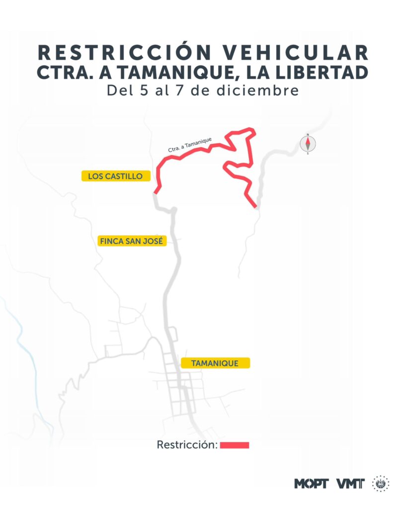 Entre el 5 y 7 de diciembre, con motivo del World Downhill Skateboarding Championship, se restringirá el tránsito vehicular en la carretera que conduce de Comasagua a Tamanique.