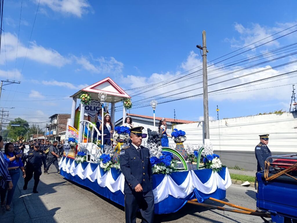 Diferentes divisiones destacadas en esta zona recorren las calles junto a la carroza de la PNC, los agentes de la PNC recorrieron junto a los vehículos de la institución y las reina de la carroza.