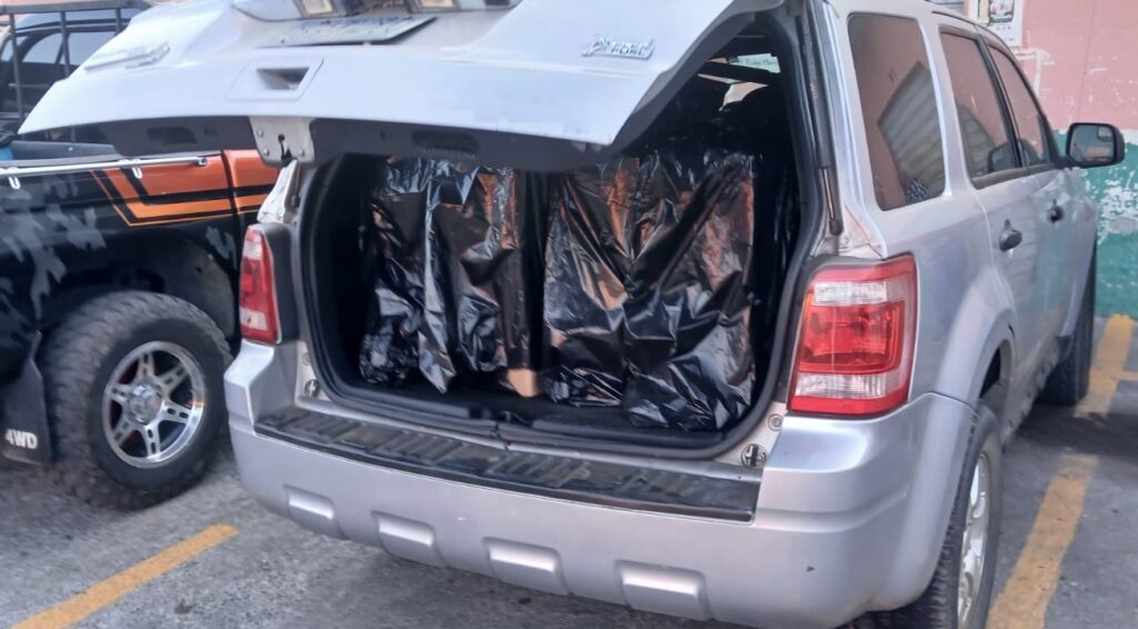 Las autoridades recibieron información de la venta ilegal de cigarrillos e iniciaron la intervención en Sonzacate, en donde registraron movimientos sospechosos de dos vehículos, dentro de los que se encontraron las cajas de cigarrillos, envueltos en bolsas negras.