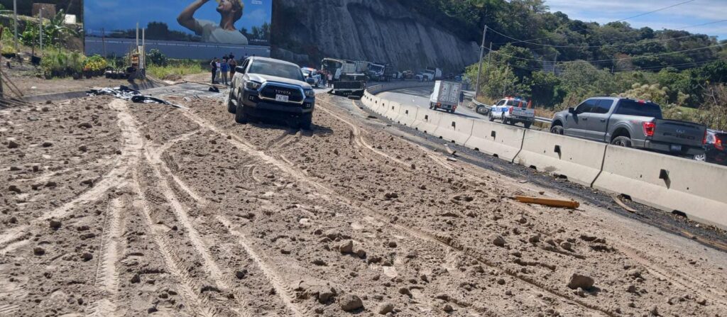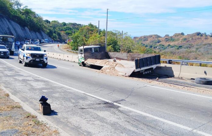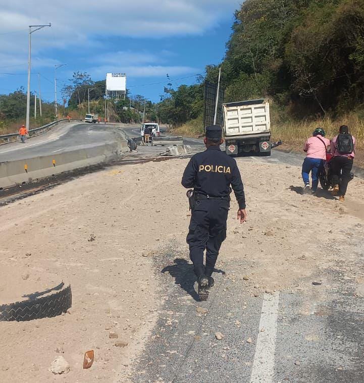 La PNC reporto que un camión que transportaba tierra chocó contra los separadores ubicados sobre el km 25 de la carretera que conduce al Puerto de La Libertad, en Zaragoza.