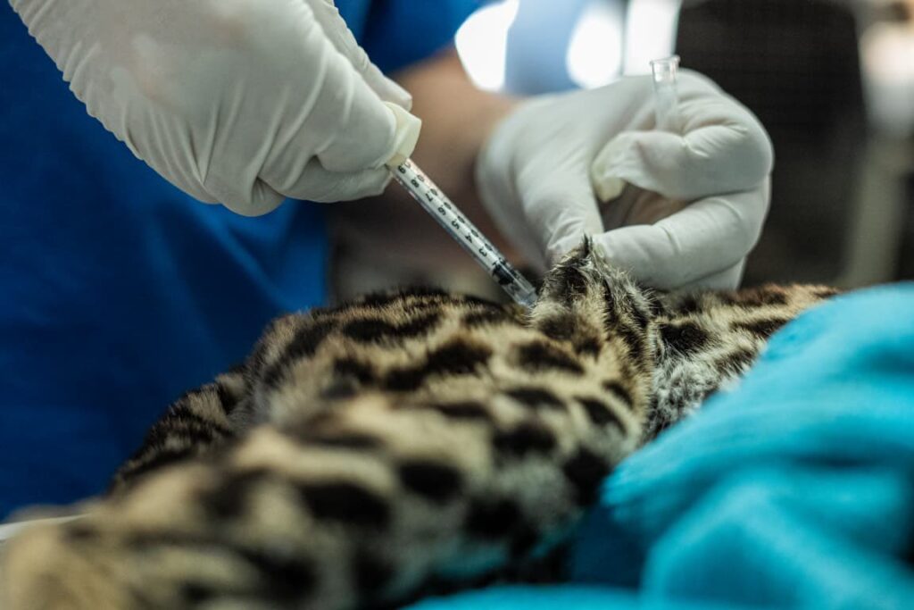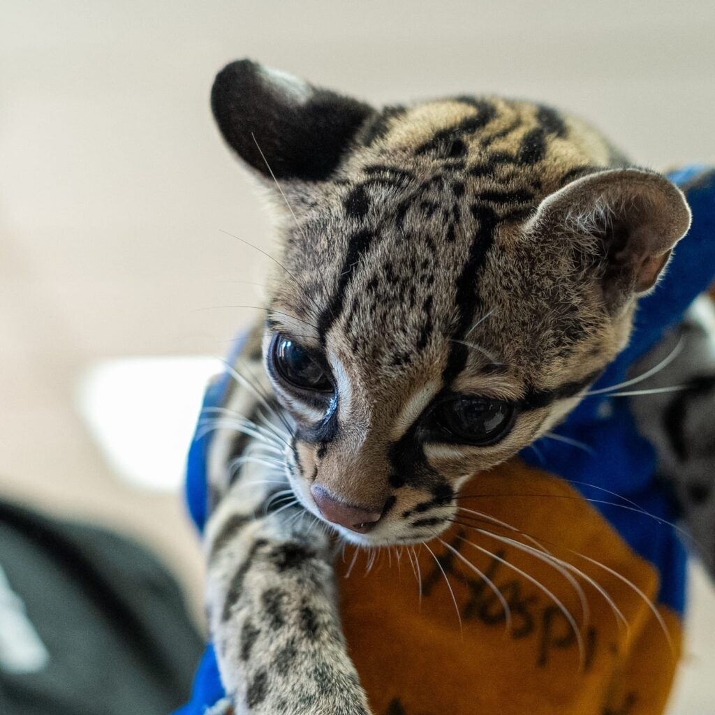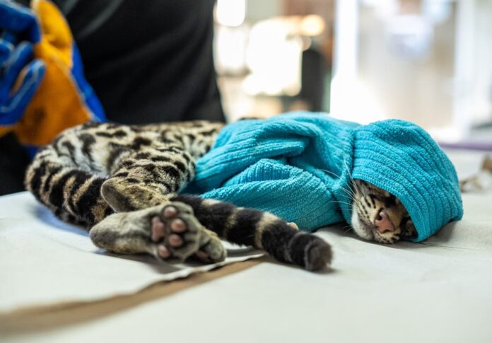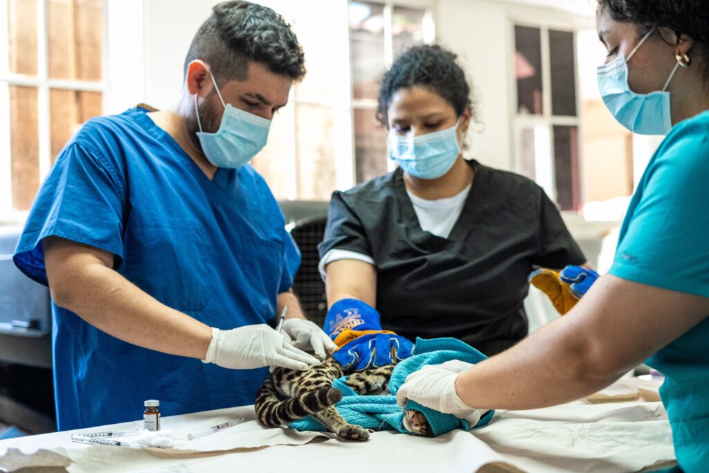 Un tigrillo macho adulto fue recibido por el equipo veterinario del Ministerio de Medio Ambiente, luego de ser encontrado sobre una carretera, con sospecha de atropellamiento.