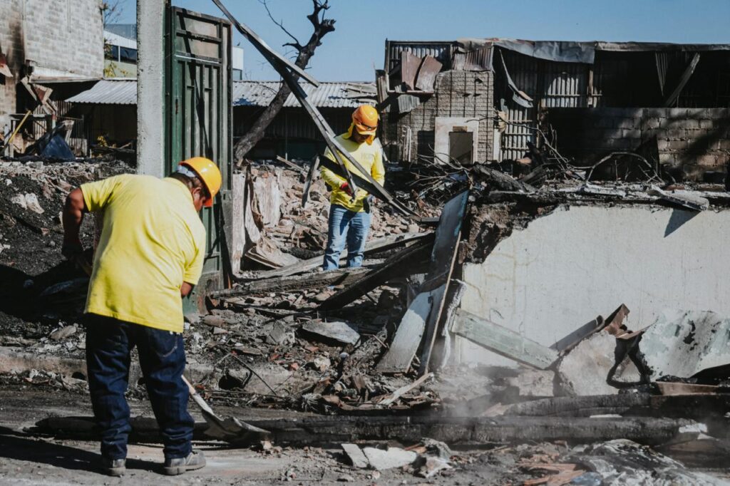 Las labores incluyen la clasificación y disposición adecuada de los residuos, como parte de un proceso integral de atención tras el incendio ocurrido en el sector, con el objetivo de garantizar la seguridad de los salvadoreños.
