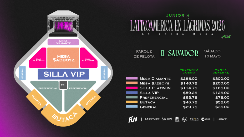 El fenómeno global del regional mexicano contemporáneo, Junior H, confirma su regreso a EI Salvador como parte de su esperada gira «LATINOAMÉRICA EN LÁGRIMAS $AD BOYZTOUR -LATAM 2026”.