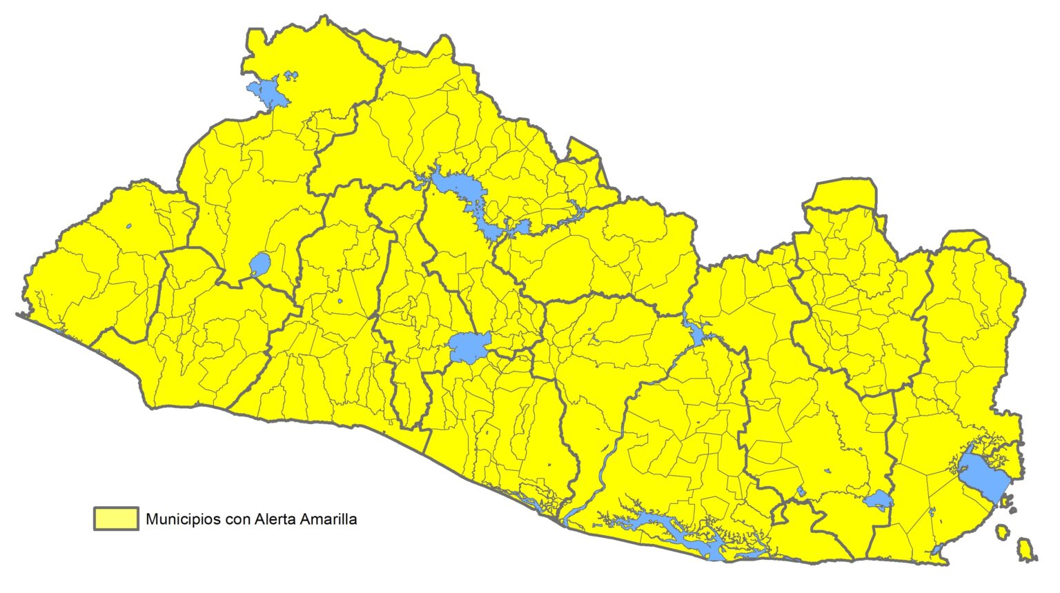 Los informes diarios del Ministerio del Medio Ambiente y Recursos Naturales (MARN), relativos a los puntos de calor en el territorio nacional y la existencia de abundante cobertura vegetal seca que facilita la propagación del fuego, generándose así, las condiciones que incrementan la probabilidad de ocurrencia de estos fenómenos, por tanto, emite ALERTA AMARILLA A NIVEL NACIONAL POR INCREMENTO DE INCENDIOS FORESTALES.