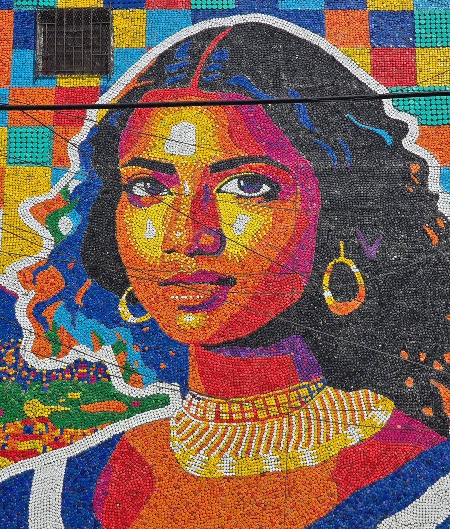 La obra no solo impacta por su dimensión —al ser catalogada como la más alta del mundo en su tipo— sino también por su componente ambiental. Las más de 100 mil tapas plásticas utilizadas fueron recolectadas y clasificadas por colores para dar forma a cada detalle del mural, promoviendo así la cultura del reciclaje y la conciencia ecológica.