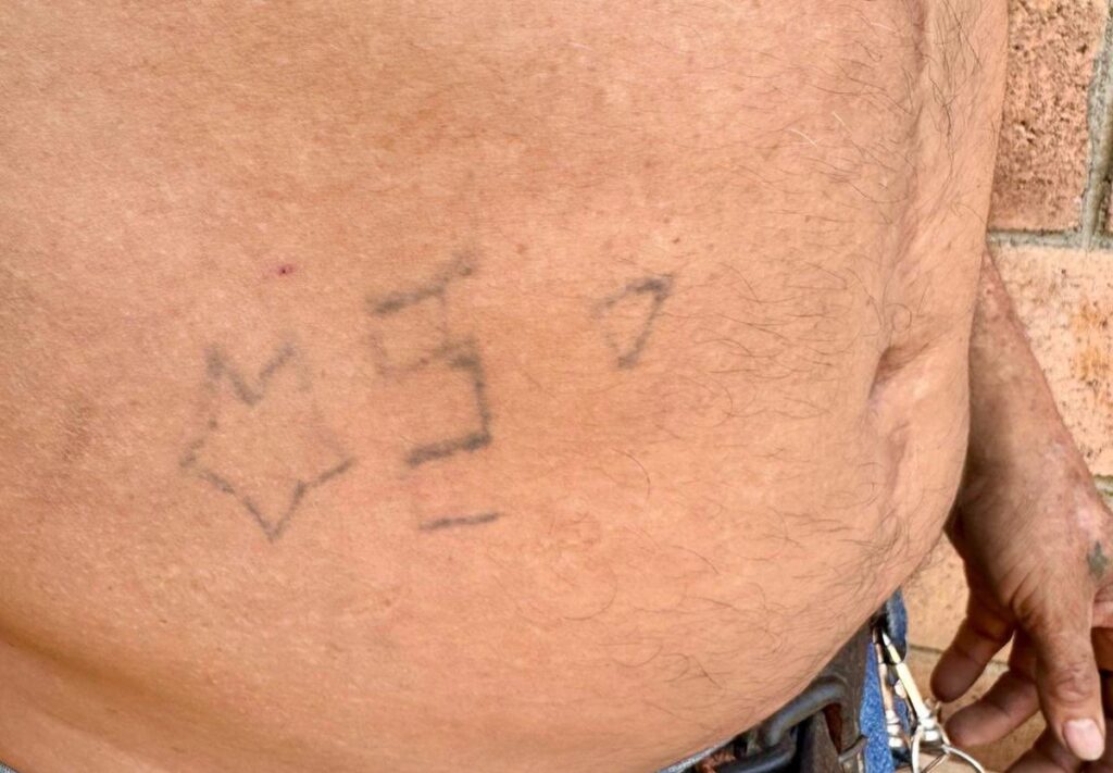 El Ministro de Defensa Nacional, René Francis Merino Monroy, reporto la detención de un presunto pandillero de la MS-13, que escondía sus tatuajes alusivos.