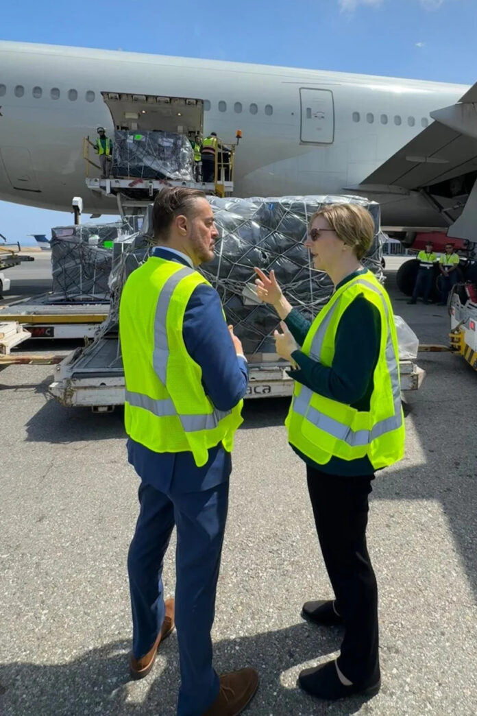 «¡Otro día productivo aquí en Caracas! Hoy facilitamos la entrega de más de 6.000 kilos de medicamentos para apoyar la recuperación del pueblo venezolano», dijo Dogu en un mensaje en X que acompañó con fotografías de un avión de carga y cajas forradas de negro con la bandera de Estados Unidos.