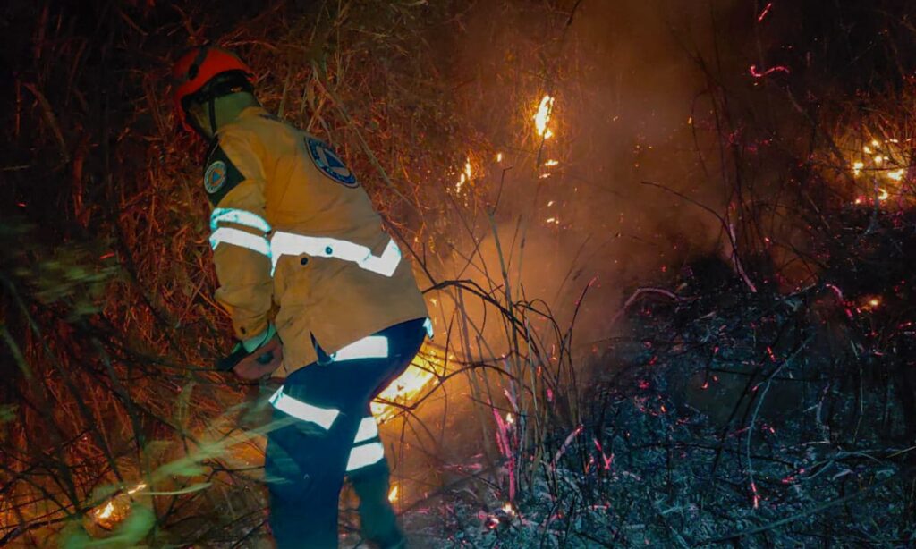 De acuerdo con las autoridades, los equipos realizan labores de control utilizando líneas cortafuego y herramientas forestales, con el objetivo de evitar que las llamas continúen propagándose.