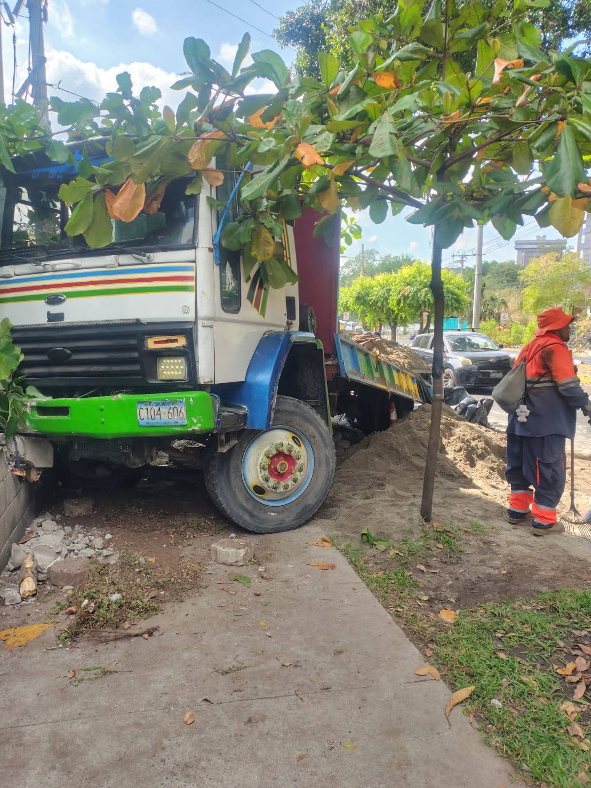 De acuerdo con información brindada por la Cruz Verde Salvadoreña, elementos de la seccional de Mejicanos atendieron la emergencia luego de que un camión que transportaba tierra perdiera el control y terminara impactando contra el muro perimetral de una institución del Órgano Judicial.