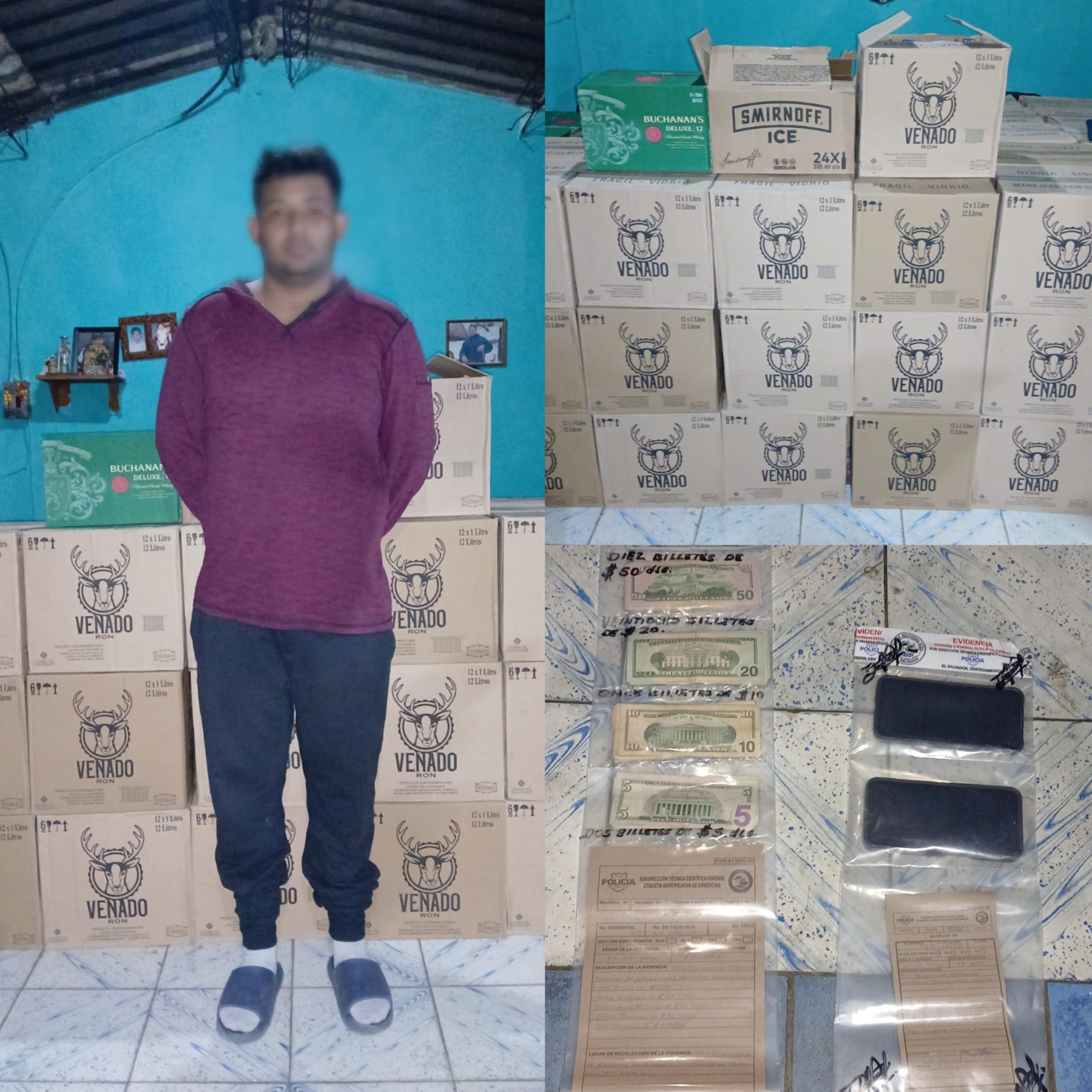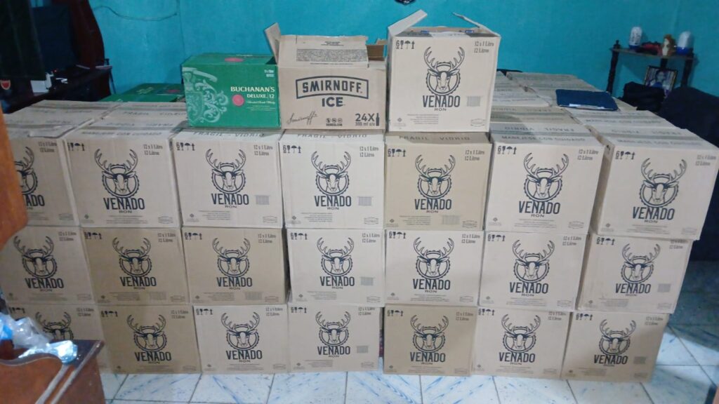 Durante el procedimiento, se incautaron un total de 114 cajas que contenían bebidas alcohólicas nacionales e internacionales, además de $1,380 dólares en efectivo.