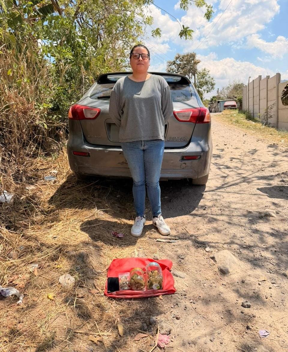 Durante un patrullaje en la calle Plan del Pino, en Soyapango, soldados ubicaron a Andrea Gabriela Meléndez Turcios, de 30 años de edad, a quien se le incautaron porciones de marihuana, un teléfono celular y un vehículo.