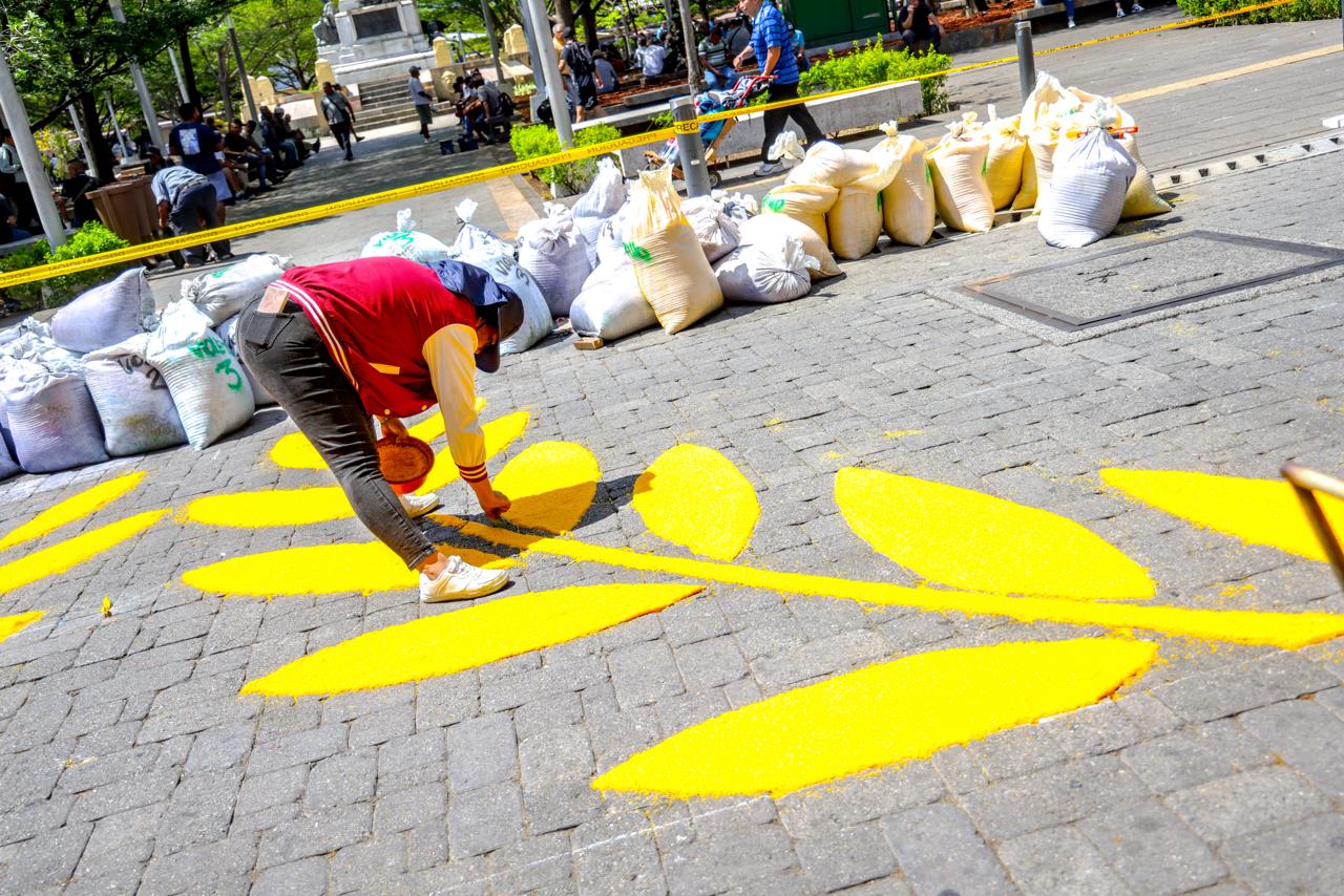 La Alcaldía de San Salvador Centro inició este martes la creación de la alfombra de sal más grande de Centroamérica en la Plaza Libertad, como parte de las actividades de Semana Santa.